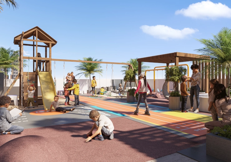 Located on the south-western corner of the Podium Roof, the thoughtfully equipped play area has several seating options adjacent to it where parents can relax and socialise while the children play.