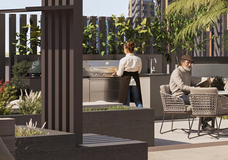 A place where residents can organise communal gatherings or private parties for family and friends. This space offers the perfect backdrop to a memorable gathering with its natural tones, green embellishments and views of the city.