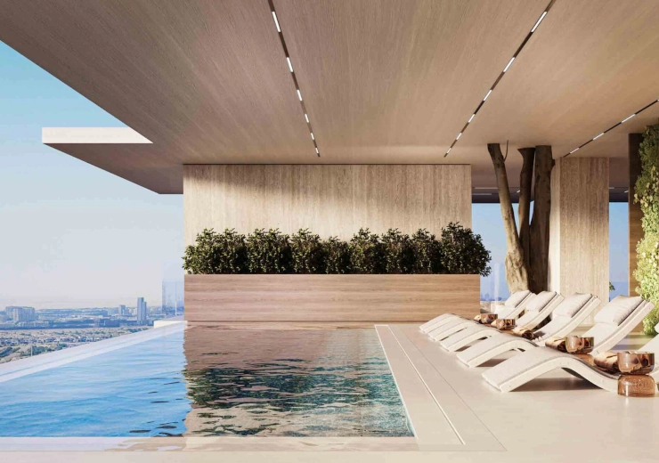 Natural trees and plants embed themselves among the natural-toned walls on three sides of this pool. Designed to recreate the ambience of a natural water body, this pool is bathed in natural light thanks to the unobstructed opening on the outer side, not to mention the stunning views it offers.